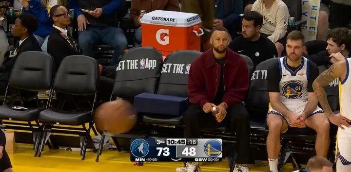 第二节,小库里比赛中意外受伤,随即独自返回更衣室,随后勇士官他因左内收肌酸痛将不会参加今晚的比赛