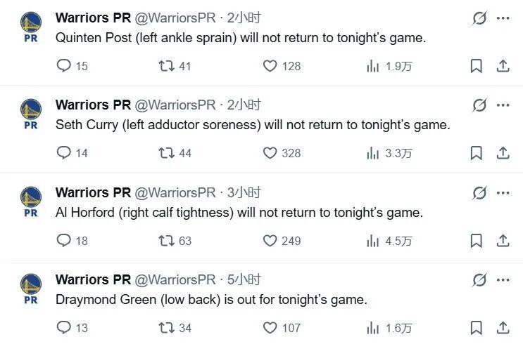 屋漏偏逢连夜雨,船迟又遇打头风,本就伤兵满营的勇士,一场比赛连伤三人,真的是一比吊遭啊!