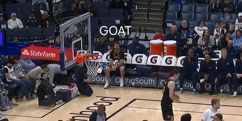 死球时麦丹就想投个3分试验手感,没成想替补席作壁上观的库里,球瘾难耐,不讲武德搞偷袭,背后做出封盖麦丹的动作,随后 挥拳庆祝防守成功。
